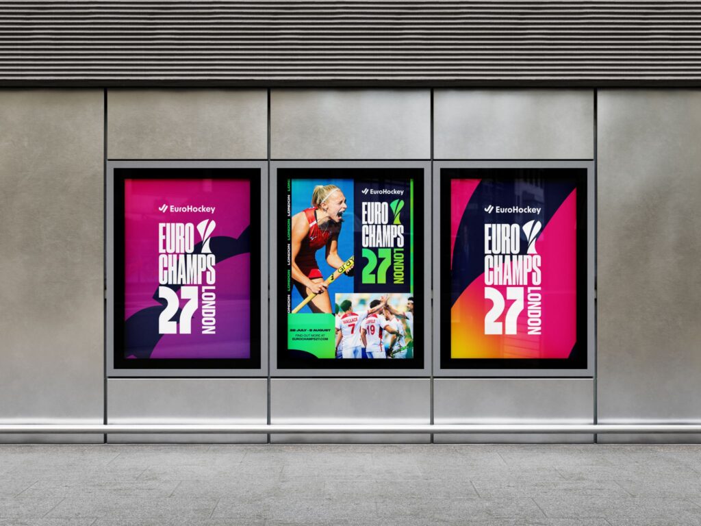 This wasn’t about refreshing a championship brand – it was about helping England Hockey think and act like a major event. Filling a 15,000-seat stadium demands clarity, confidence and cut-through, so we created an identity that feels bold, contemporary and fan-first. Eurochamps 27 London is designed to travel far beyond the existing hockey audience and announce itself as a truly unmissable moment in the sporting calendar.